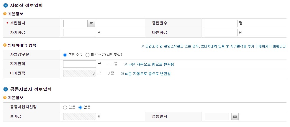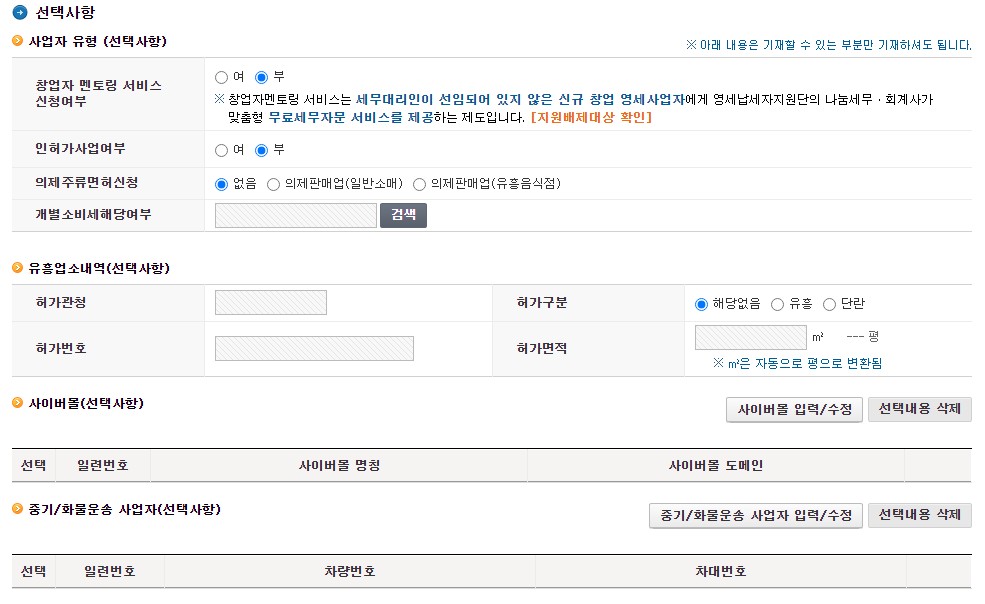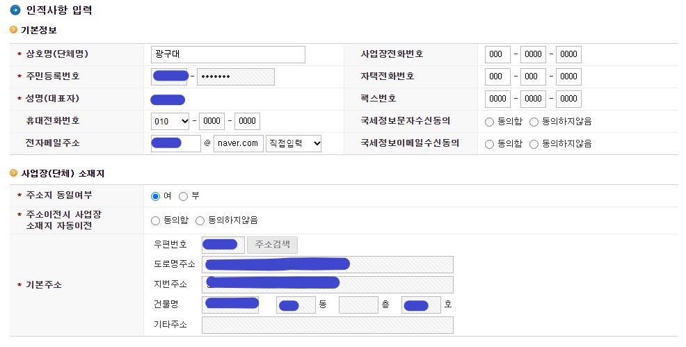 사업장이 주민등록상 주소랑 다르다면 기타를 체크 하신 후