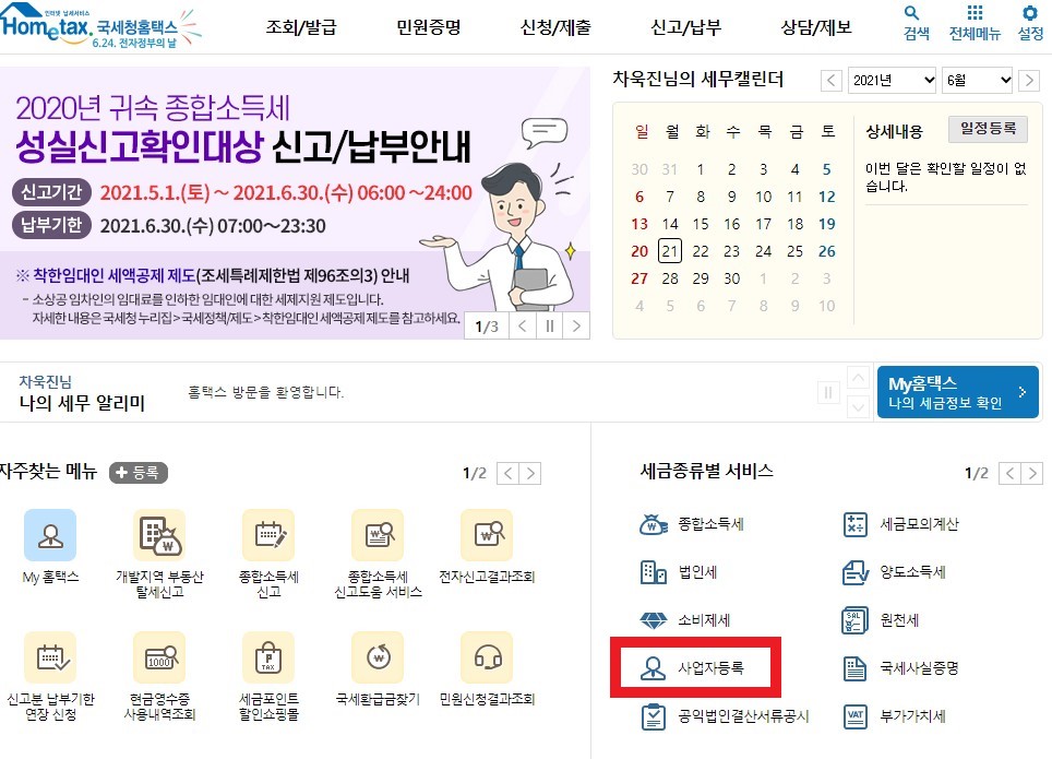 ③ 로그인 완료 후 홈 화면에서 오른쪽 아래 사업자등록을 클릭 !
