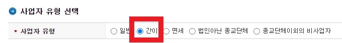 ⑧ ' 간이 ' 사업자를 선택합니다.