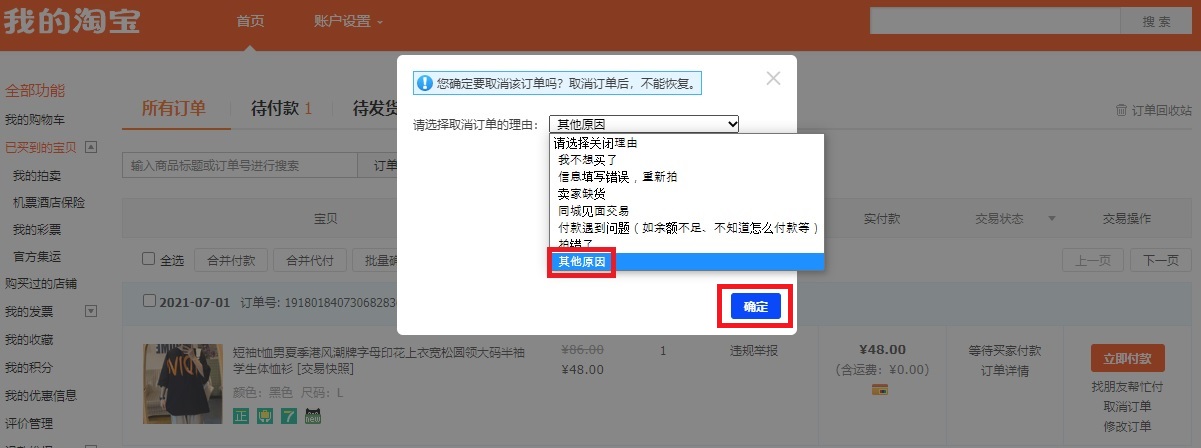 타오바오 홈에서 구매내역으로 들어가줍니다 !