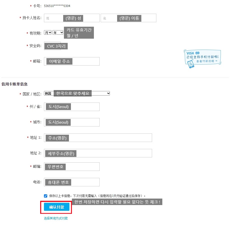 처음에만 입력해 두면, 앞으로의 결제시 다시 입력할 필요는 없습니다.
